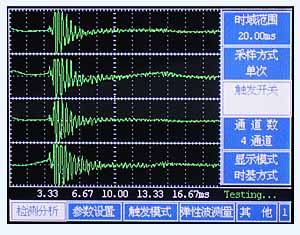 智能型四通道声振检测仪是采用最先进的微电子技术、计算机技术、DSP技术和SMT工艺制造技术研制而成的新一代振动声学无损检测仪器。仪器配有多种不同形式的传感器及长度计测器,实现敲击法、振动阻尼法和声阻法等声振检测,也可改进为声发射检测设备。仪器由新型固态锂电池供电,用户可根据自己的需要选择TFT真彩显示器或场致发光高亮度显示器。