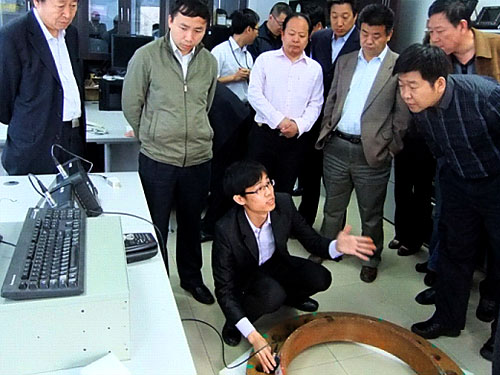 图二 特高压高颈锻造法兰快速涡流检测技术演示现场 |