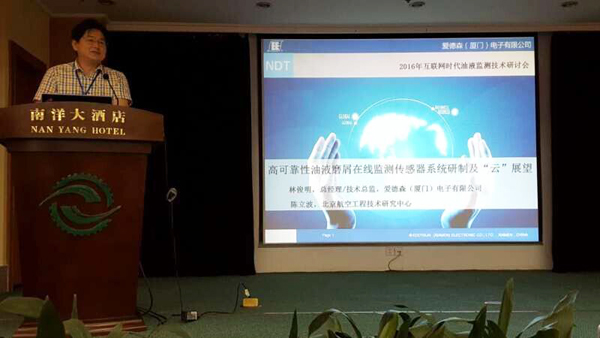 全国无损检测学会副理事长、爱德森院士专家工作站站长林俊明研究员应邀出席会议,并在大会上做了《高可靠性油液磨屑在线监测传感器系统研制及“云”展望》专题报告。报告中,林俊明研究员介绍了爱德森(厦门)电子有限公司与北京航空工程技术研究中心合作开发的油液磨屑在线监测传感器系统及无损云检测/监测技术发展近况,阐述了现代检\监测技术与互联网、云计算、大数据技术相结合的可行性与重要性,引起了与会专家代表的广泛关注和响应。