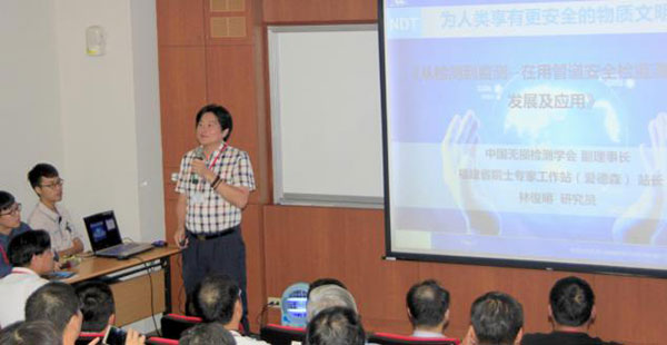 为促进海峡两岸非破坏检测技术交流及人才互动, 2017两岸非破坏检测研讨会于2017年9月20日至9月22日在台北市福华文教国际会馆举行,共有海峡两岸100余位无损检测界代表参会,其中大陆方面代表十余位。大会主席暨台湾非破坏检测协会董事长江支弘主持开幕式并致辞;大陆方面,中国无损检测学会秘书长徐永昌致辞;中国无损检测学会副理事长、爱德森(厦门)电子有限公司福建省院士专家工作站站长林俊明研究员作了“从检测到监测--在用管道安全检监测技术的发展及应用”的主题报告。